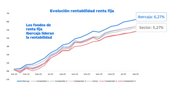Corredor destaca las rentabilidades conseguidas por los fondos de renta fija de la gestora de Ibercaja, que acumulan el 6,27% entre enero de 2024 y septiembre de 2025, situándose por encima de la media del sector y superando a su competencia directa.